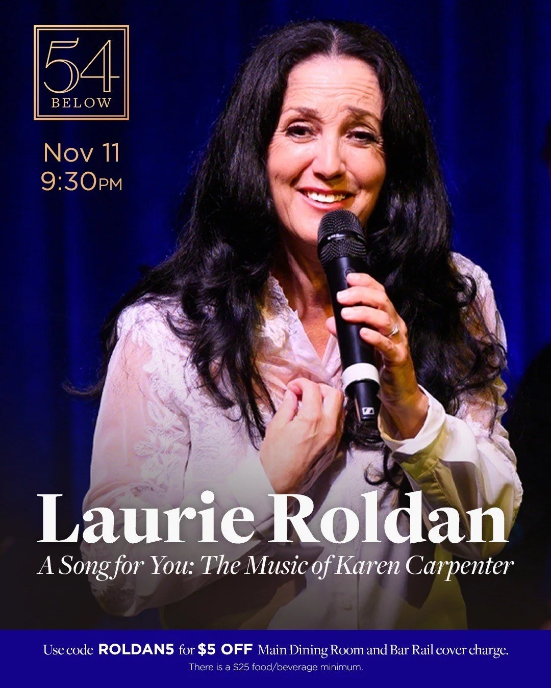 Laurie Roldan, star of the acclaimed cabaret A Song for You: The Music of Karen Carpenter, makes her 54 Below debut with a soulful and unforgettable evening that blends timeless music with an intimate story of resilience, rediscovery, grace, and the healing power of song. With a voice reminiscent of Karen Carpenter’s warmth, Roldan performs beloved hits like “Close to You,” “Superstar,” “Rainy Days and Mondays,” and “Ticket to Ride.”